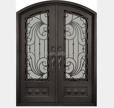 Trang Trí Thép Sắt Tay Giả Mạo Scrollwork Lông Mày Vuông Hàng Đầu Victoria Bản Lề Có Thể Hoạt động Kính Cường Lực Phía Trước Đôi Nhập Biệt Thự